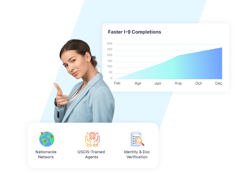 EVA connects you to a nationwide network of trusted, USCIS-trained verification agents who accurately verify both the employee’s identity and documents—in person or remotely, following federal guidelines.