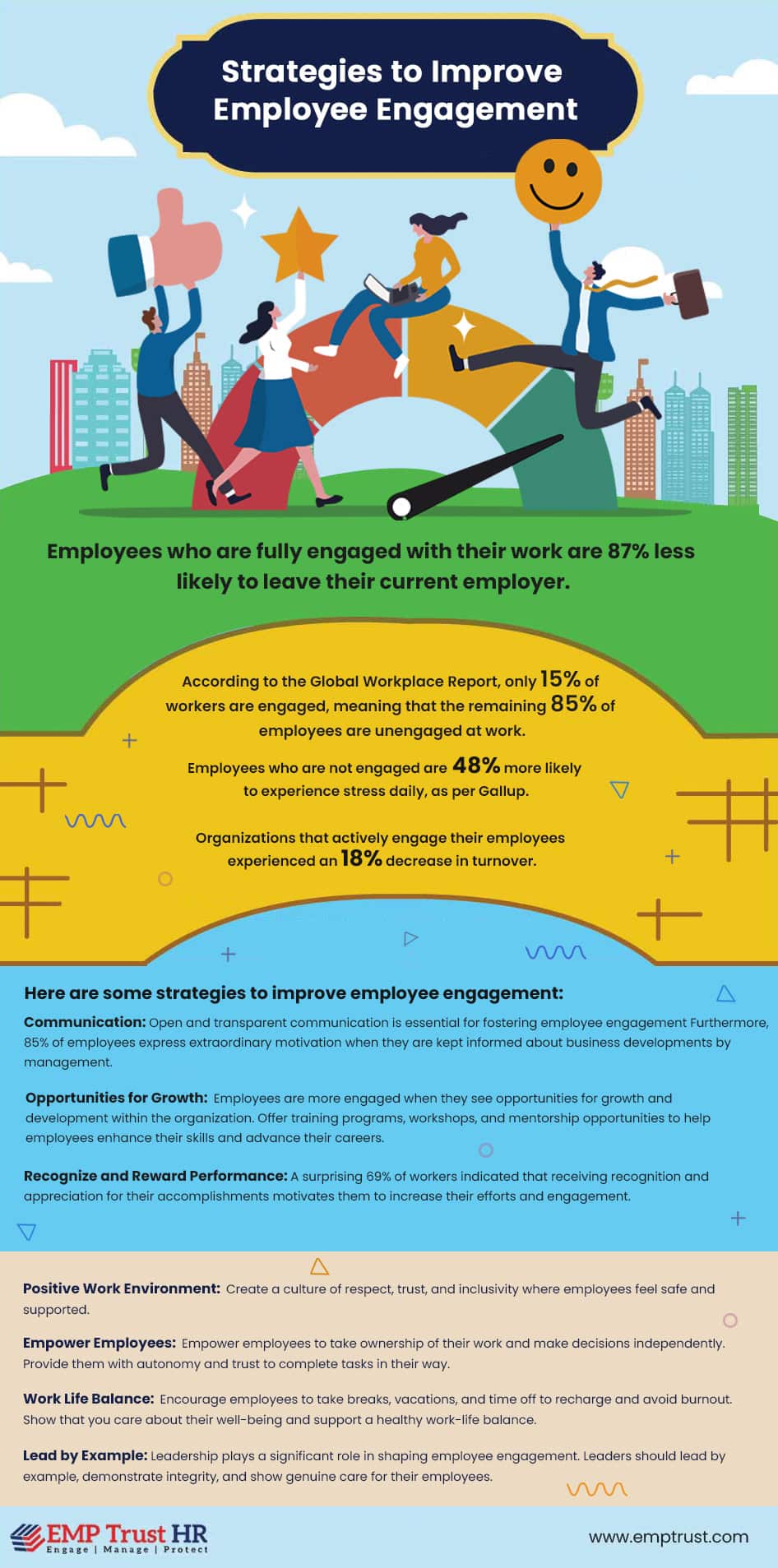 - Lead by Example: Leadership plays a significant role in shaping employee engagement. Leaders should lead by example, demonstrate integrity, and show genuine care for their employees.